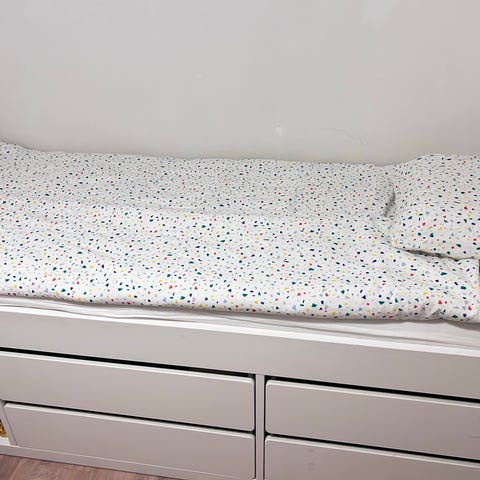 En fin utdragbar barnsäng från Ikea. Minnen heter den och är i metall