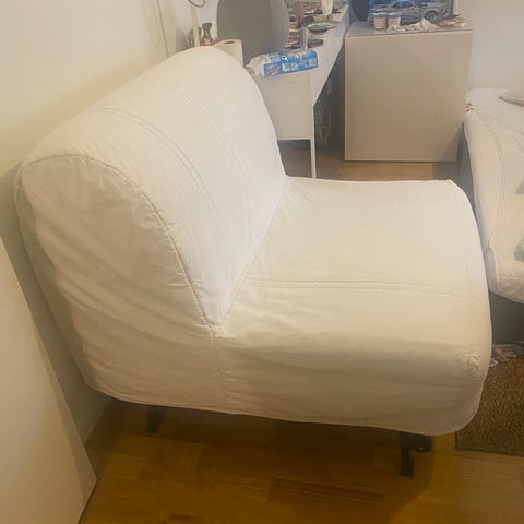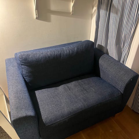 En uppskattad bäddfåtölj som är jätteskön att sitta i.