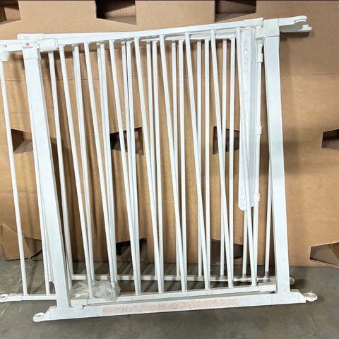 En av grindarna har en skadad plastdetalj, se bild. Påverkar ej funktion.
