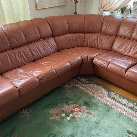 Säljer en rejäl och bekväm hörnsoffa i äkta läder.