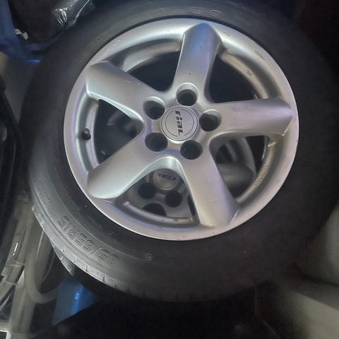 Jag erbjuder 1 uppsättning dubbdäck på aluminiumfälgar 6J15 med 195 65 R15 95 T-däck.