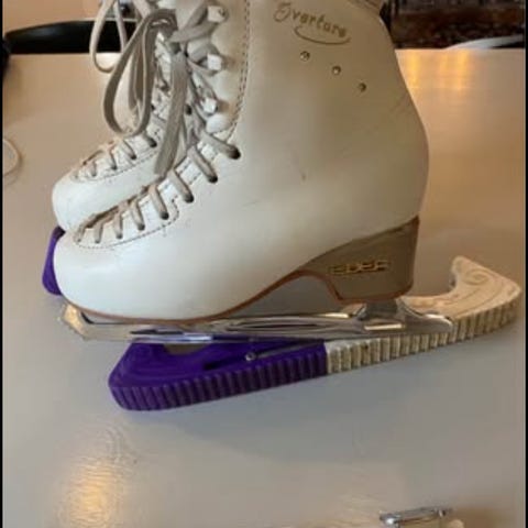 Skridskor för den som vill börja på riktig konståkning. Stabila och sköna, även för enklare hopp. Edea overture stl 225 med skena som tillval enligt bild (34/35). Mycket bra kvalitet som köptes helt nya, men är nu tyvärr urväxta. Köpta på Stockholm Skateshop.