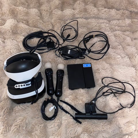 PlayStation VR, VR-headset inklusive två rörelsekontroller, kamera, kablar. Allt fungerar som det ska och är knappt använt, anledningen varför jag vill sälja vr är på grund av att jag inte knappt spelar mer. Har du frågor så är det bara att ställa dom.(pris går att diskuteras)