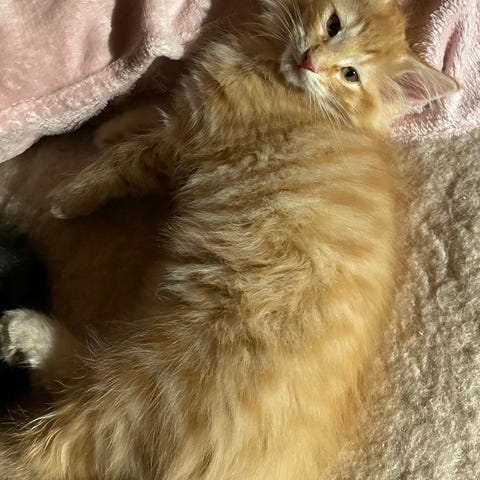 Norsk skogkatt. 2,5 månader gammal hona. Kattungarna växer upp i hemmiljö och är vana vid barn och andra djur.