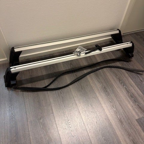 Låsbart, 2 nycklar och momentnyckel för fästning ingår. Gummilister helt nya aldrig använt. T-spår finns för bl.a fästning snyggt på ex. Takboxen