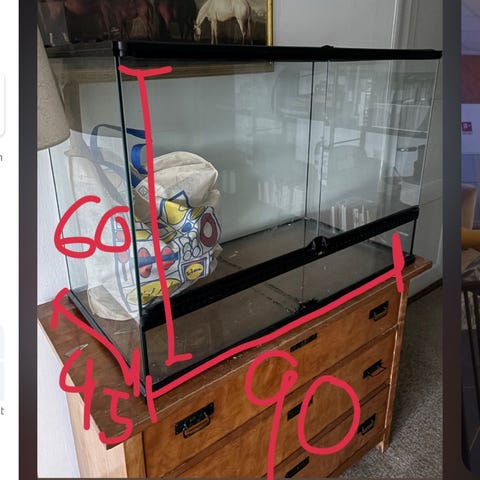 Akvarium i glas med ram av aluminium. Längd 95cm Höjd 41cm Djup 41cm