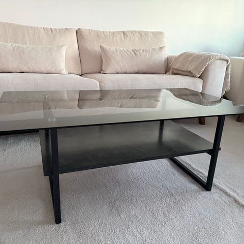 Soffbord med marmor (fejk) glasskiva och svarta ben