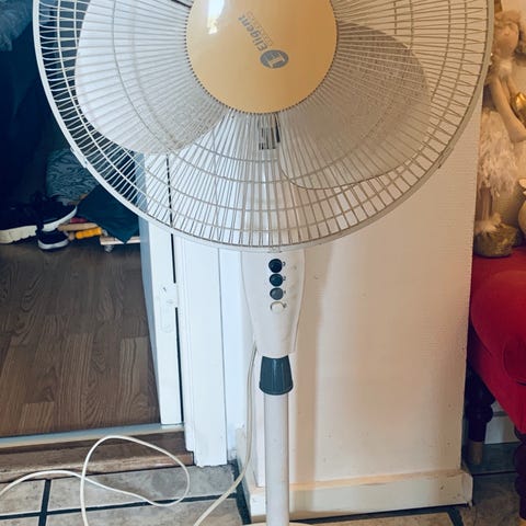 Trotec TTV 30 M golvfläkt i svart färg. Fläkten har en robust konstruktion med metallblad och ett skyddsgaller i metall. Den är avsedd för golvplacering och används för luftcirkulation och kylning i olika miljöer.