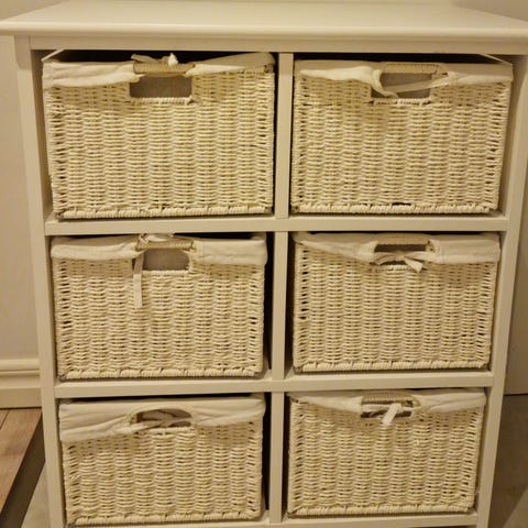 Bra förvaring för barnleksaker, vantar, mössor, strumpo och blöjor mm. Små lådor som rymmer mkt