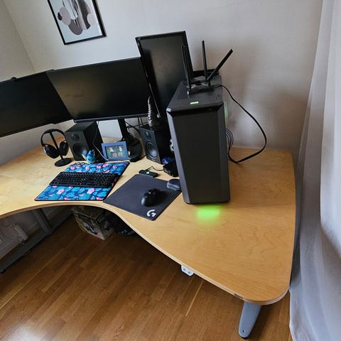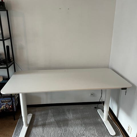 Bordsskiva: Björk 120 X 70 cm. Eldriven, tyst motor med steglös höjdjustering.