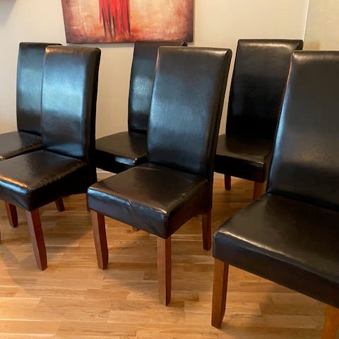 4 st. Massiv ek med textilklädsel. Två dynor sitter lite löst men kan fästas med skruvar.
