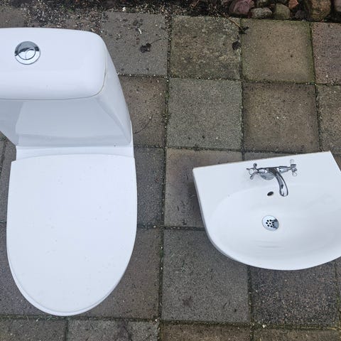 Ifö Sign med mjukstängande sits med nya dämpare 500 kr. Handfat Gustavsberg med blandare Hansgrohe pris 900 kr. Allt i mycket bra skick.