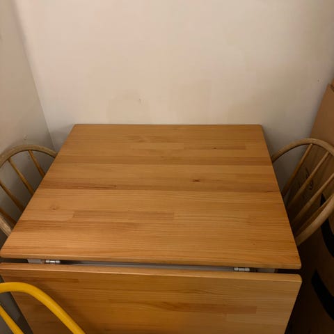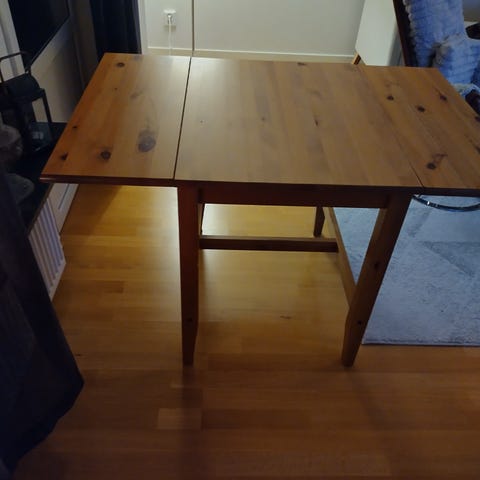 Vitt slagbord från IKEA. Bordet är tillverkat i trä och har en enkel design med en genomgående låda för förvaring. Säljes pga flytt.