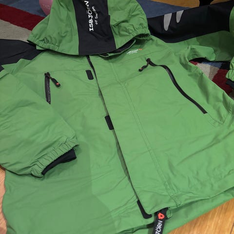 Skalkläder Isbjörn. Blå jacka storlek 98/104 cl. Två svarta skalbyxor storlek 98/104 cl och 110/116 cl. Mycket fint skick.