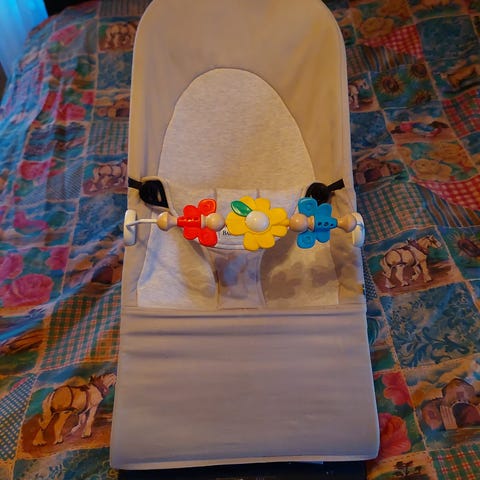 Babybjörn babysitter / barnstol i mörkt (svart?) nätmaterial. Anpassad för barn och erbjuder stöd och komfort vid sittande. Inget av våra barn har velat sitta i stolen som därför knappt använts. Vi köpte stolen ny och således bara vi som ägt den. Finns i Umeå.