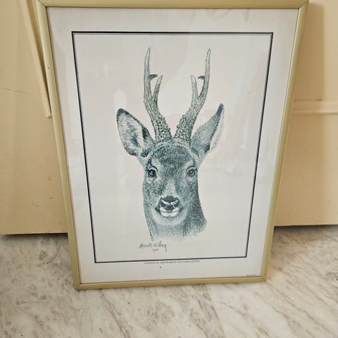 René Sintenis, tecknad bild föreställande en björn. Svartvit illustration signerad av konstnären. Datum och plats angivna på baksidan: Berlin den 14/9 1959. Inramad med enkel ram.