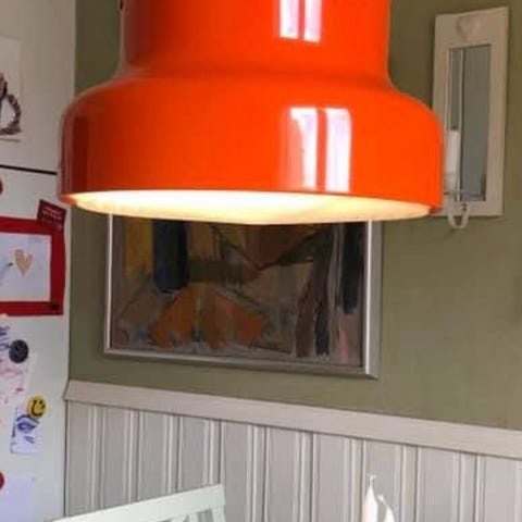 Taklampa av i grön färg . Lik Bumling.