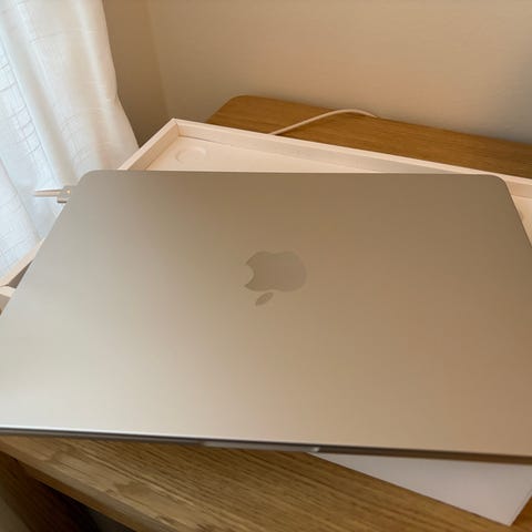 Säljer en Silver MacBook Air med Apples M2-chip från 2022. Datorn är i bra skick och har använts varsamt. Det finns några få, mindre märken som uppstått från fodral, men inget som påverkar funktion eller helhetsintryck – i övrigt välvårdad och fin.