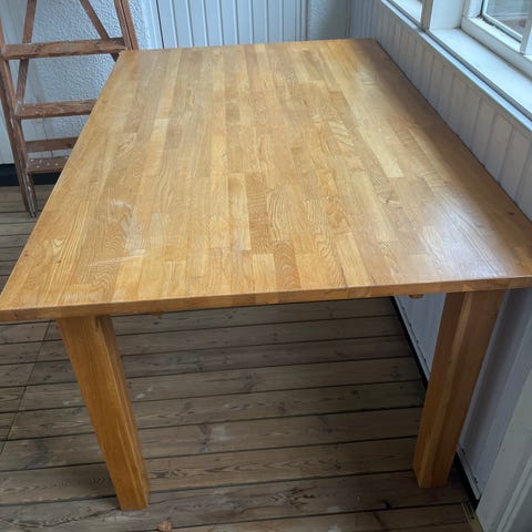 Matbord i massiv ek. Ett par mindre märken på ett ställe på sidan av bordsskivan.