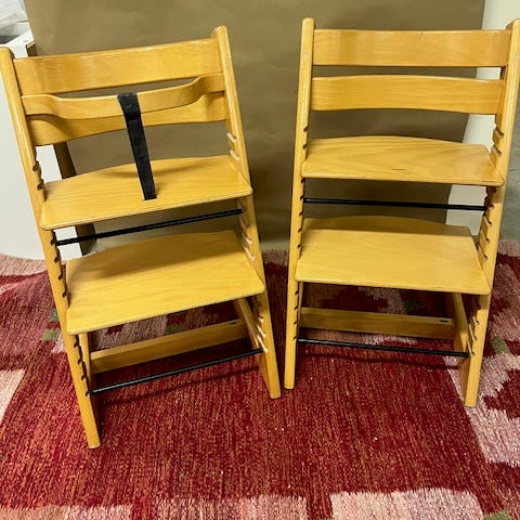 - Ljusgrå Stokke Tripp Trapp från 2020 i ok använt skick.