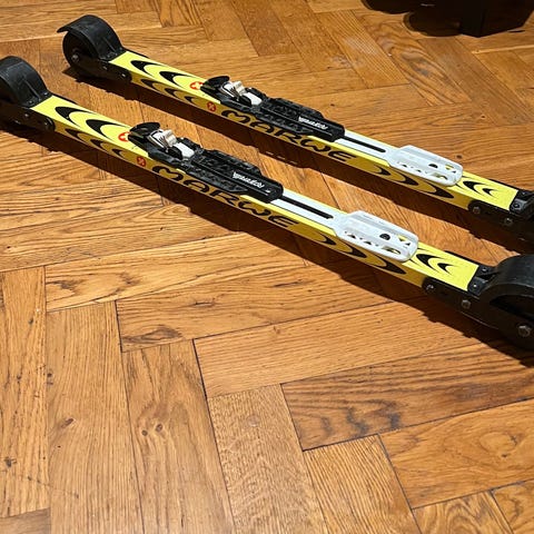 Äldre rullskidor som inte är använd så många ggr. Stavar och pjäxor ingår.