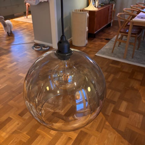 Fin taklampa i rökfärgat glas från IKEA. Superfin och tidlös. Hämtas i Bromma.