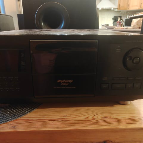 Sony GHP5 CD-spelare med inbyggda högtalare. Enhet med CD-skivläsare och kontrollpanel för ljudinställningar. Färg: svart och silver.