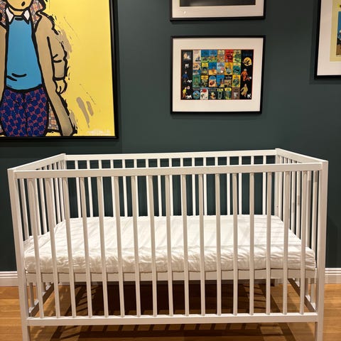 IKEA spjälsäng för barn. Vit färg och enkel design som passar i olika rum och inredningar.