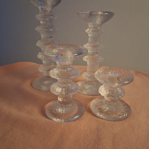 3 stycken Iittala festivo-ljusstakar tillverkad i klart glas. Ljusstaken har en dekorativ design med flera nivåer och är avsedd för kronljus.