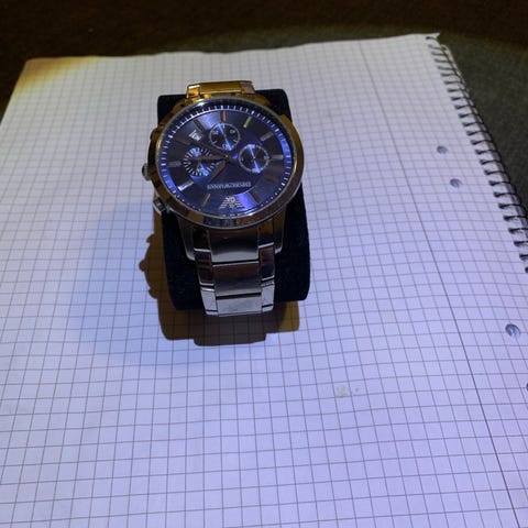 Emporio Armani herrklocka, i fint skick, fungerar bra. Originalbox medföljer (boxen är lite sönder på sidan dock)