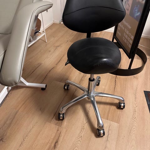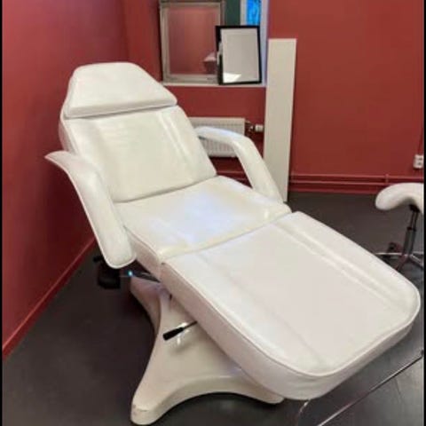 Stabil behandlingstol som går att justera manuellt. Kabeln fungerar inte och stolen säljs därför i befintligt skick. Mindre skavanker finns, se bilder för detaljer.