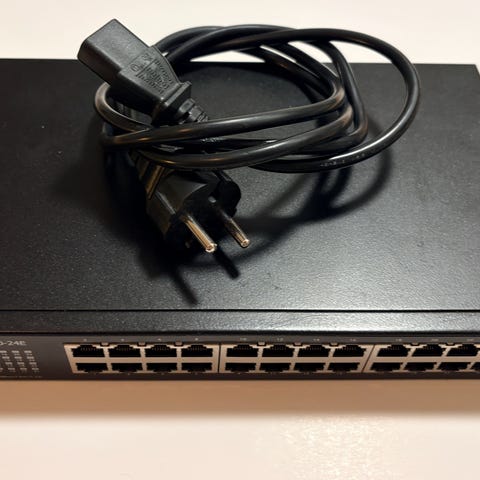 ZyXEL XGS5600-26F nätverksswitch med flera portar för nätverksanslutning. Enheten har strömanslutning AC 100-240V och är avsedd för rackmontering. Modell med olika typer av portar inklusive SFP och RJ45 för flexibel nätverkskonfiguration.