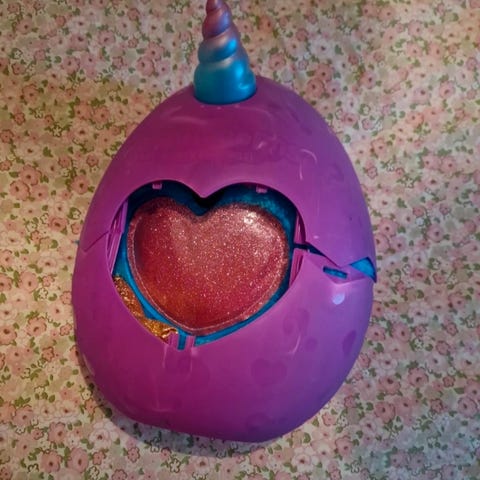 Stort RainBocorns ägg (ca 28cm) inkl gosedjur. Paljetterna på hjärtat på ägget är vändbara.