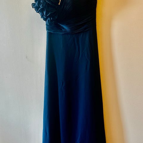 Marinblå lång klänning utan axelband i storlek 16