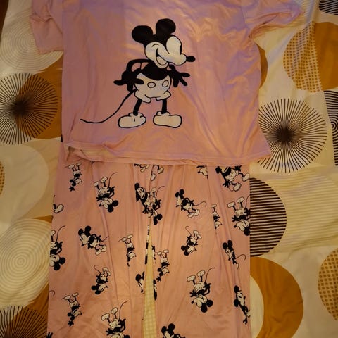 Säljer detta helt nya svarta mussepigg linne. Helt nytt. I mjukt töjbart material då det bla är Elastane i linnet. Om du är intresserad av mussepigg. Så har jag två mussepigg pyjamar i ljus rosa och ljusblått. I samma strl som linnet. Mvh Marita Mikkola