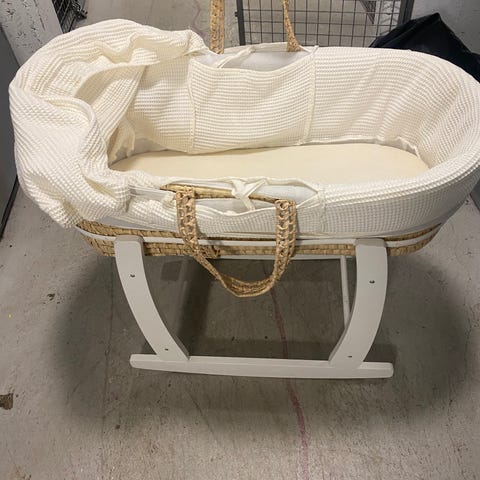 Säljer en underbar vagga i vitt från babydan som har använts till ett barn. Sänghimmel, madrass och spjälskydd ingår.