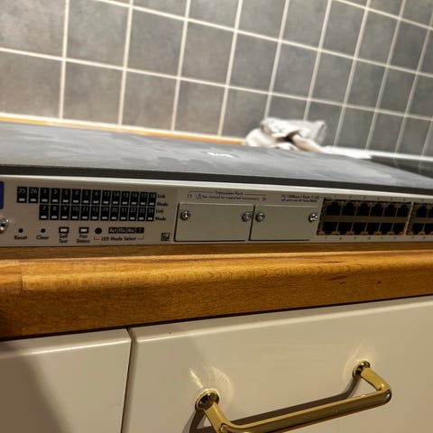 Huawei s5320-32x-ei-ac 24G nätverksswitch med 24 portar. Enhet för nätverksanslutning, svart färg, avsedd för professionell användning i nätverksinfrastruktur.