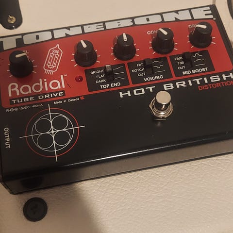 Selling the legendary Radial Tonebone Hot British distortion pedal in excellent condition. This isn't your average distortion; it features a real 12AX7 vacuum tube to deliver that authentic, high-gain British stack sound.
