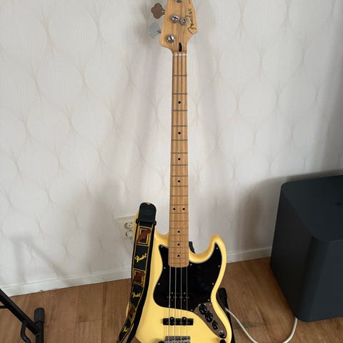 Nu har du chansen att köpa denna Tokai Jazzsound bas i Candy apple red med Matching headstock från 80-talet. Japanskt kvalitetsbygge. Fantastiskt vacker flammig hals.Dessa ser man inte varje dag. Spelar o låter mycket bra. Orginal gig-bag ingår. Inga byten o skickas ej.