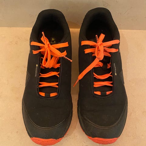Icebug löparskor i storlek 41. Skorna är gula med svarta detaljer och reflexer. Alla 17 dubbar sitter kvar under varje sko. Ger riktigt bra grepp på isiga underlag.