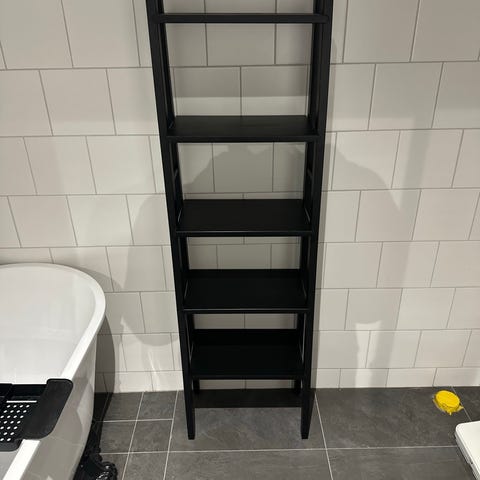 En IKEA Billy vit låg modell och två stycken hyllor i ek skänkes, dessa två är ej från IKEA. Den ena ekhyllan är 135 cm hög och den andra 76 cm hög.