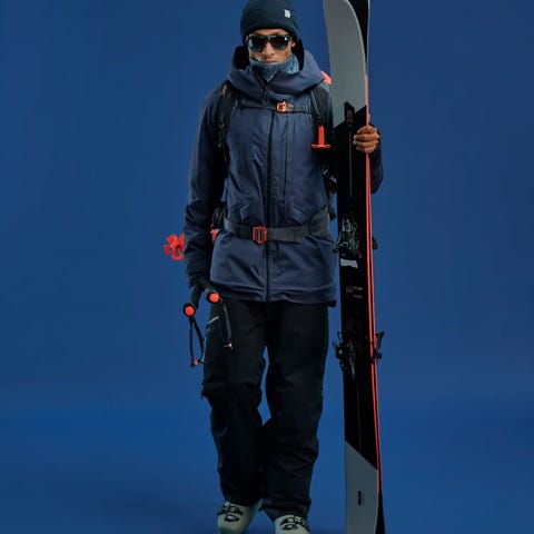 Jackan är figursydd, vattentät (se symboler), har luftningshål på ärmarna och snölås.