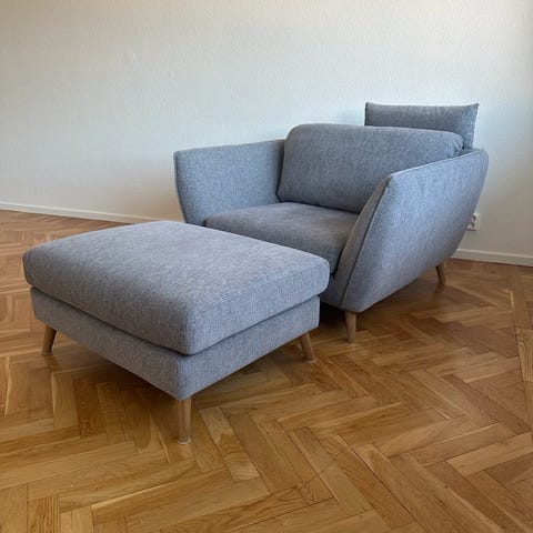 Fotpall Mio Madison med ben i ek. Endast använd ett fåtal gånger, i nyskick. Hämtas i centrala Malmö.