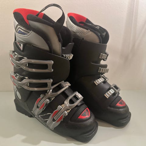 Salomon Access 70 skidpjäxor i storlek 26.5. 104 mm Skidpjäxorna är grå, svarta och röda och är avsedda för unisex-användning. De har flera spännen för justering och stöd.
