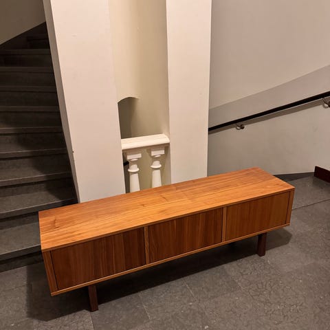 Tidlös design och bra förvaring. TV-bänken är i gott skick. Det finns en mindre repa ovanpå, dock inget som stört oss. Se bilder för mer info.