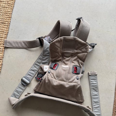 Sparsamt använd bärsele säljes. Ingår ett ”tak” som barnet kan ha över huvudet vid behov.