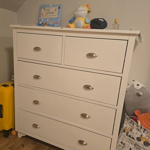 Byrå med fyra lådor inköpt på Mio. Fint skick men där är en rund vattenfläck enligt bild.