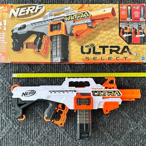 Nerf Fortnite Scar + 20 skott, 10 i magasin 10 lösa. Funkar utmärkt, kommer med nya batterier.