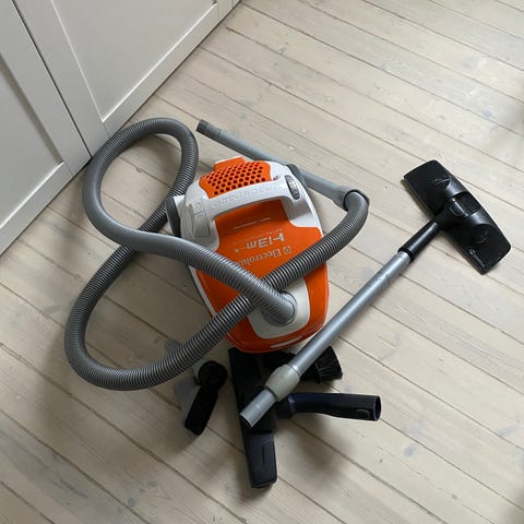 Electrolux dammsugare modell Classic Silence. Har inte lika bra sug sen vi dammsög upp barr från kungsgran så misstänker att det kan ha fastnat nåt på vägen.