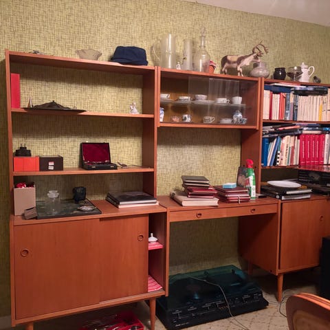 Säljer ett äldre teak med hyllor och lådor skåp i fint skick. Lite små skavanker i bruksskick